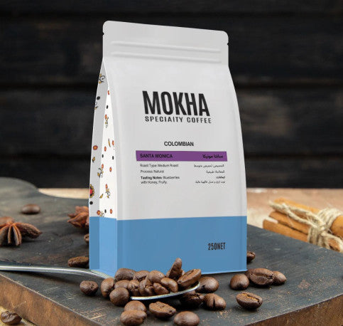قهوة سانتا مونيكا الكولومبية 250 غرام - قهوة موكا خاصة (تحميص متوسط، معالجة طبيعية) | نكهات التوت الأزرق والعسل