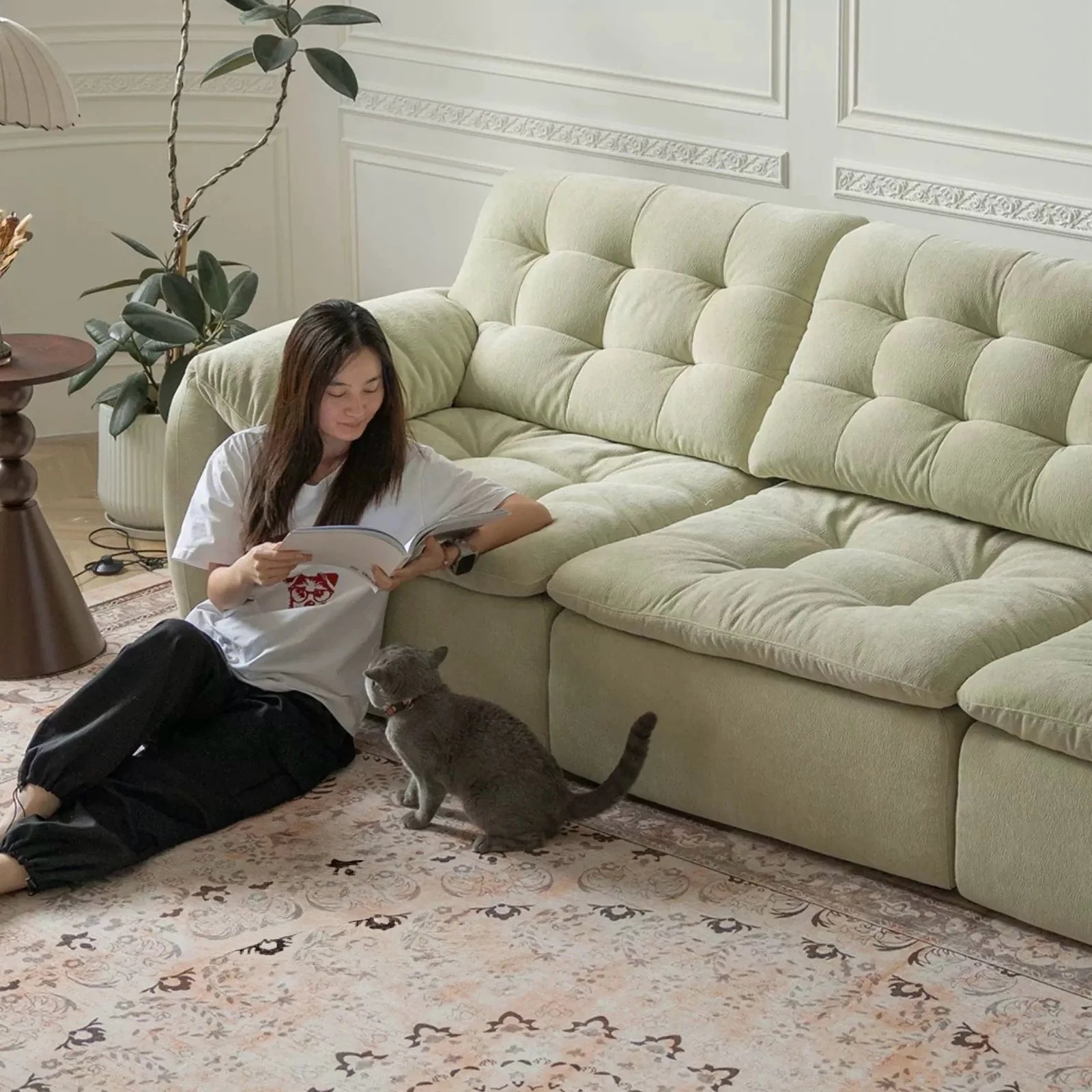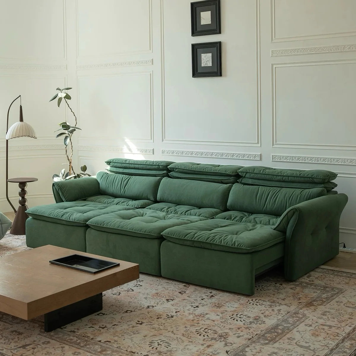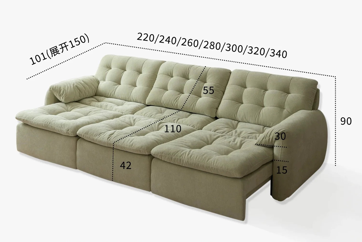 توفر أريكة بنجامين القابلة للتمديد راحةً وتعدد استخدامات لا مثيل لهما، بفضل آلية كهربائية تتيح لك ضبط عمق المقعد من 55 سم إلى 105 سم عبر جهاز تحكم عن بُعد. تصميمها العصري وخطوطها الأنيقة وهيكلها المتين يجمع بين الأناقة والمتانة. تتميز بوسائد من إسفنج عالي الكثافة 45D وحشوة من ريش الإوز الأبيض لتوفير دعم ناعم. يحمي الغطاء غير القابل للإزالة الأريكة ويحافظ على مظهرها النظيف بفضل سهولة صيانته.
