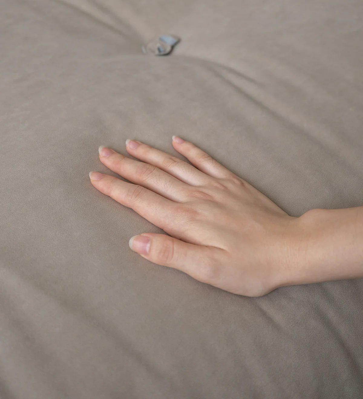 نظف بالمكنسة الكهربائية بانتظام باستخدام فرشاة ناعمة. امسح أي انسكابات فورًا بقطعة قماش نظيفة وجافة. تجنب استخدام المواد الكيميائية القاسية والأدوات الخشنة والتعرض المطول لأشعة الشمس المباشرة أو الحرارة.
