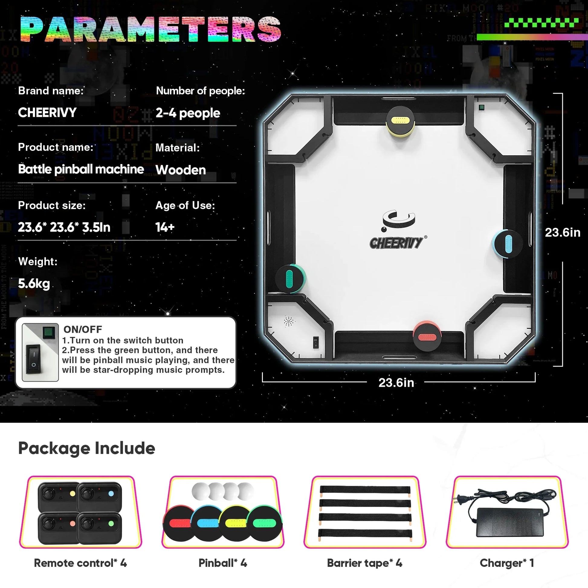 لعبة Cheerivy© Initial هي لعبة متعددة الاستخدامات يمكن الاستمتاع بها مع لاعبين أو ثلاثة أو أربعة لاعبين، مما يجعلها مثالية للتجمعات الصغيرة والمجموعات الكبيرة على حد سواء. يُزوّد كل لاعب بوحدة تحكم مصممة بعناية. تتكون وحدة التحكم هذه بذكاء من عصا تحكم سريعة الاستجابة تتيح تحكمًا دقيقًا، وزر ضغط مريح يوفر نقرة مميزة مع كل ضغطة، وشاشة عرض واضحة مكونة من 10 مصابيح LED تُظهر النتيجة بوضوح، ليتمكن اللاعبون من متابعة تقدمهم في اللعبة بسهولة.